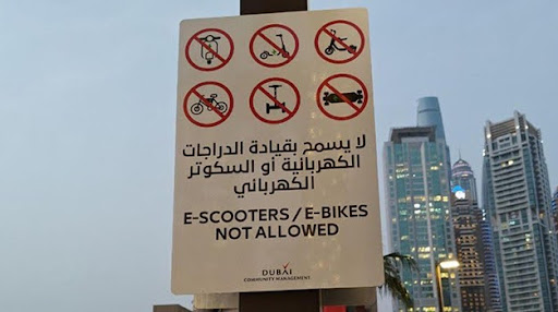 இதன் காரணமாக துபாயின் பிரதான சுற்றுலாத் தலமான ஜுமேரா பீச் ரெசிடென்ஸ் (JBR) பகுதியில் இ-ஸ்கூட்டர்கள் மற்றும் இ-பைக்குகளின் பயன்பாட்டுக்கு தற்போது தடை விதிக்கப்பட்டுள்ளது, அடுத்துள்ள பகுதிகளில் வசிக்கும் குடியிருப்பு பகுதிகளும் இதே கோரிக்கையை முன்வைத்துள்ளனர்.